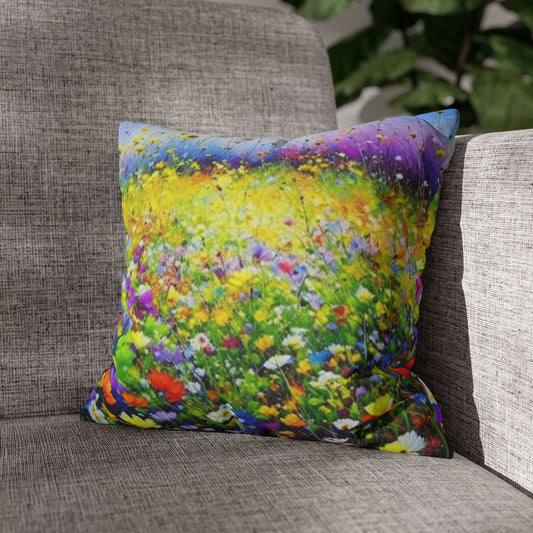 Wildflower Meadow - Spun Polyester Square Pillowcase Cushion Cover