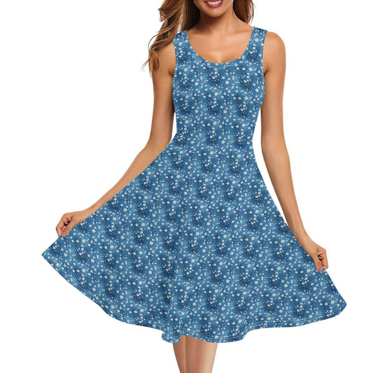 Daisies | Womens Tank A-Line Sundress with Pockets - Effortless Comfort & Style - In Blue