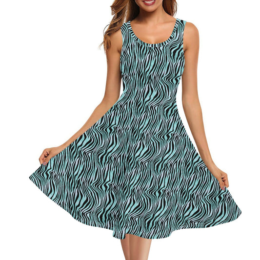 Zebra Print | Womens Tank A-Line Sundress with Pockets - Effortless Comfort & Style - Teal