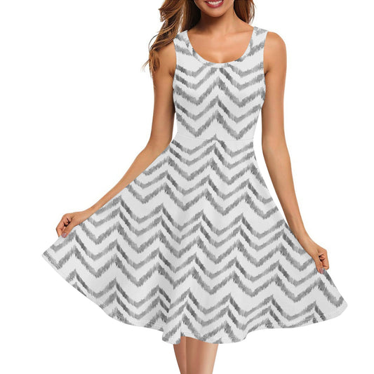 Aztec Zags | Womens Tank A-Line Sundress with Pockets - Effortless Comfort & Style - Soft Black & White