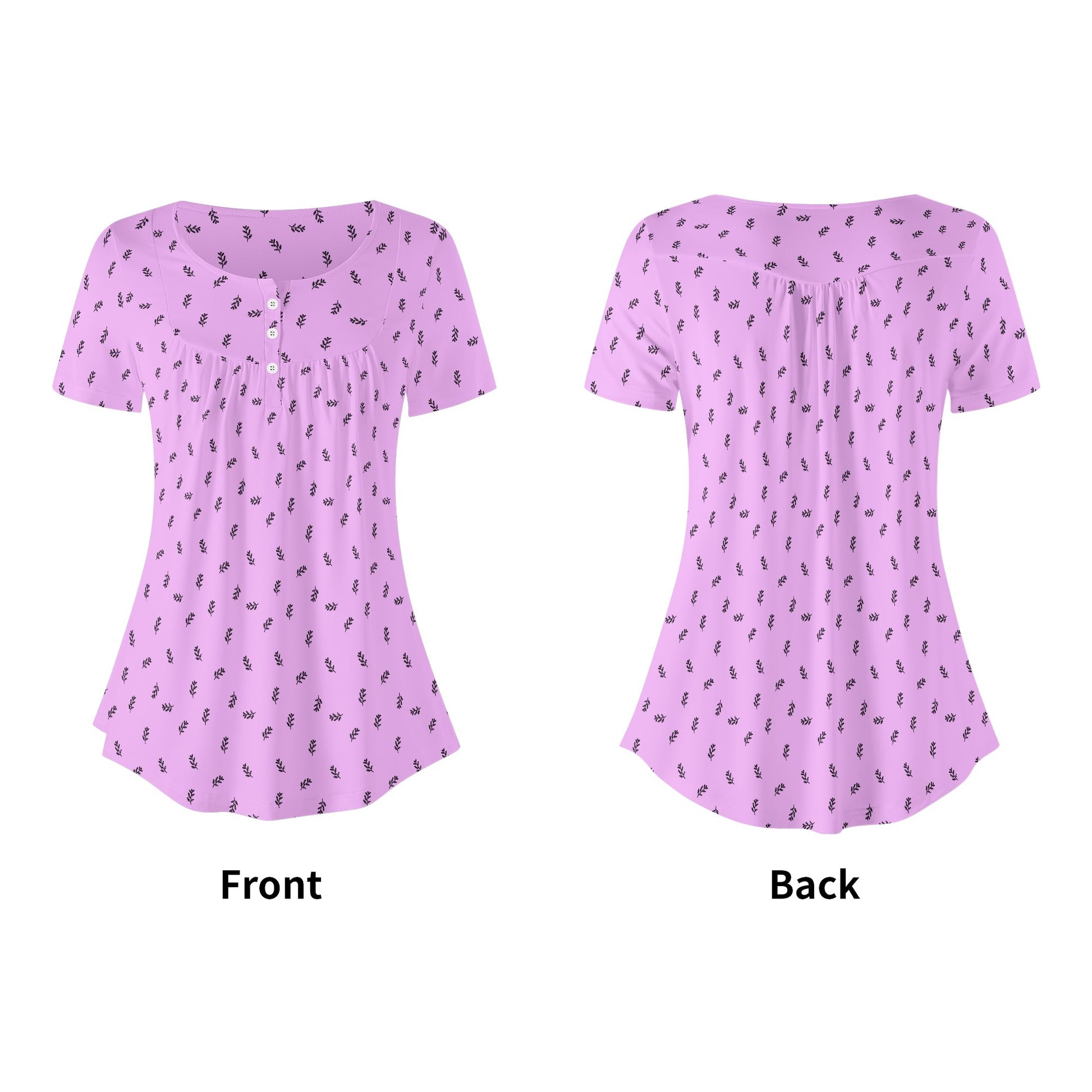 Breeze through your day in this soft, relaxed-fit blouse. With a flattering scoop neck, button detail, and gentle pleating, it’s a no-fuss style staple that works from coffee runs to casual dinners. Made from smooth polyester with a flowing drape—stylish without the bulk. Now available in sizes small to 6XL for a variety of bodies.