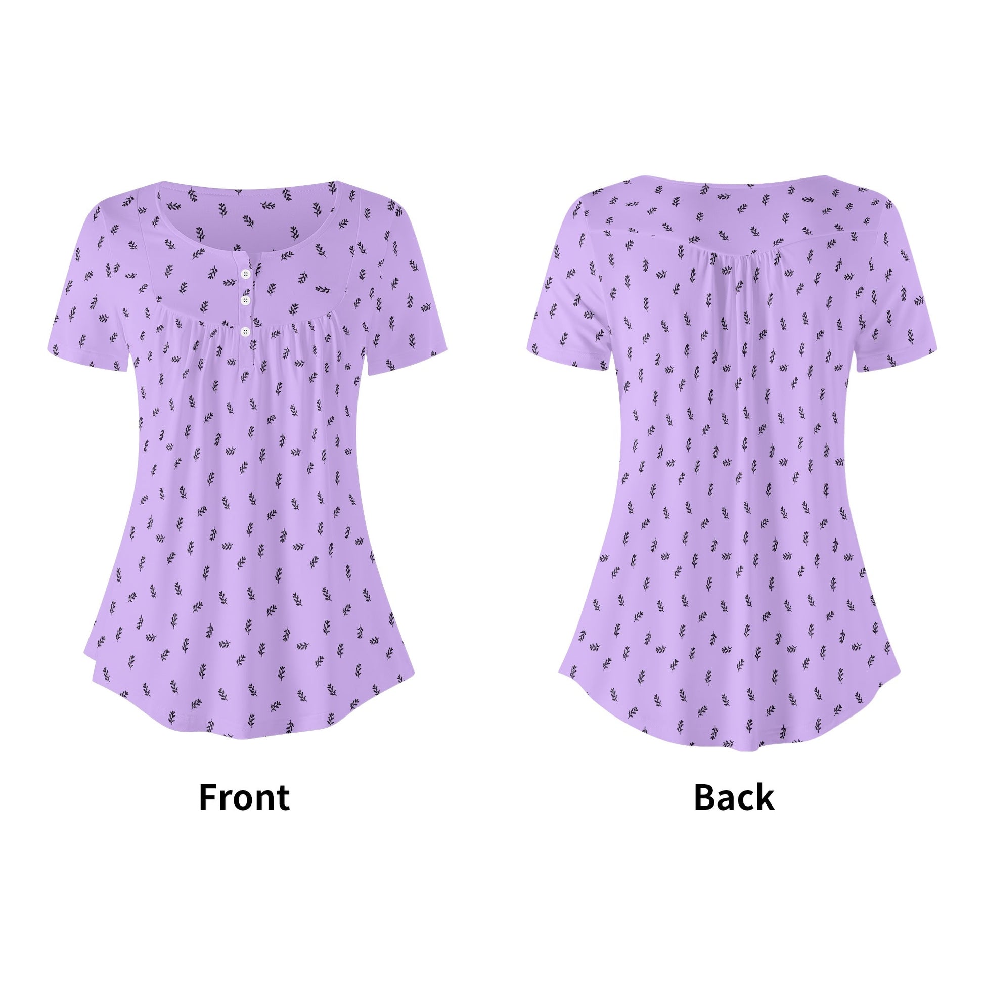 BOHO Leaves - Minimalist Design | Womens Scoop Neck Short Sleeve Loose Blouse - Plus Sizes Available - Purples