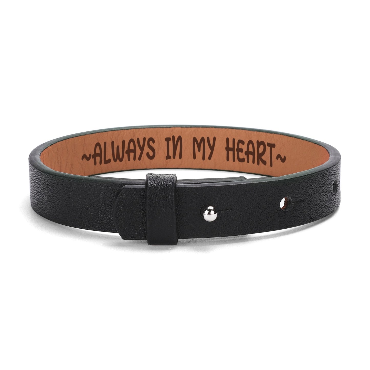 From The Heart | Engraved Leather Cuff Bracelet - Inside Message