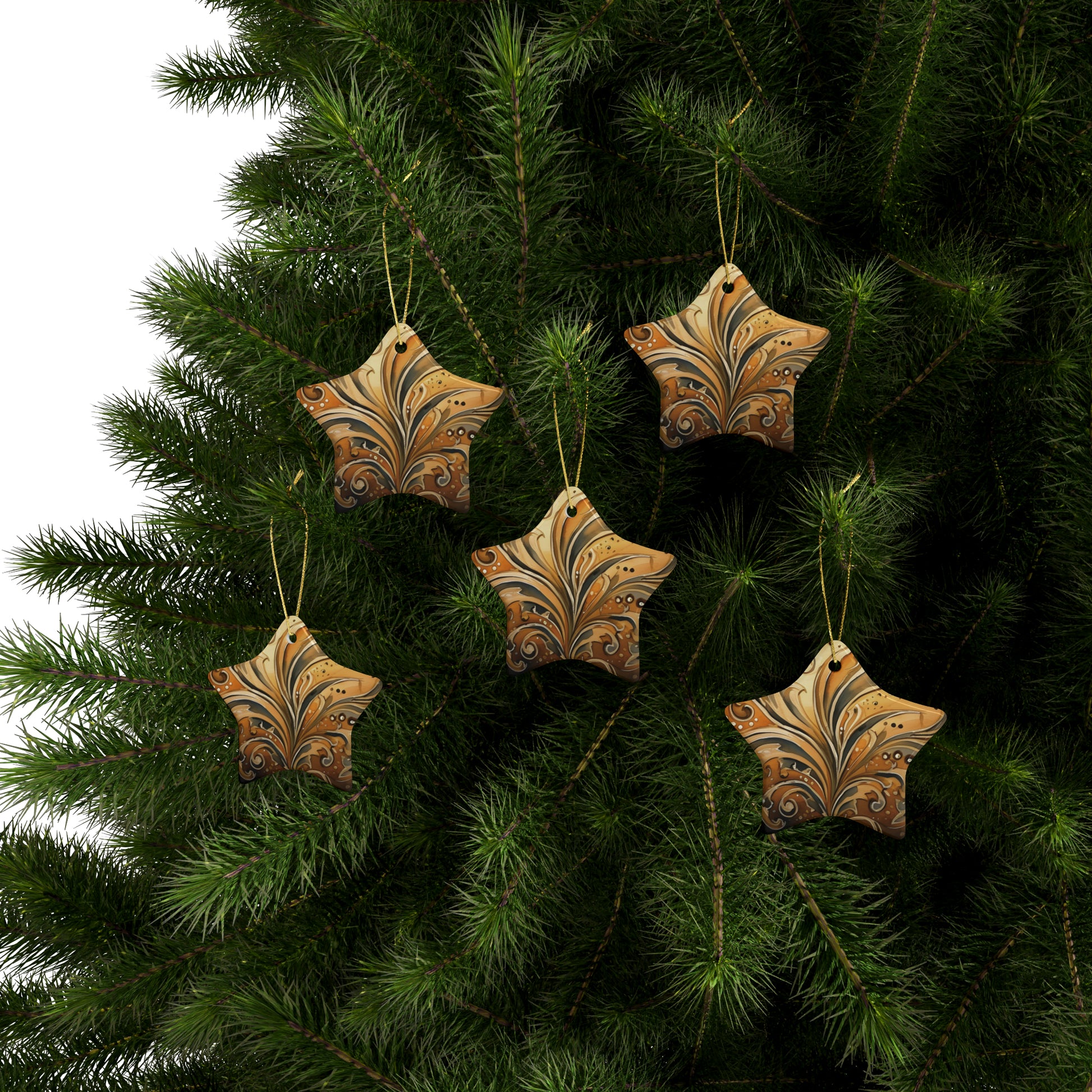 Gold Swirl Flairs Ceramic Christmas Ornaments (1pcs, 5pcs, 10pcs, 20pcs)
