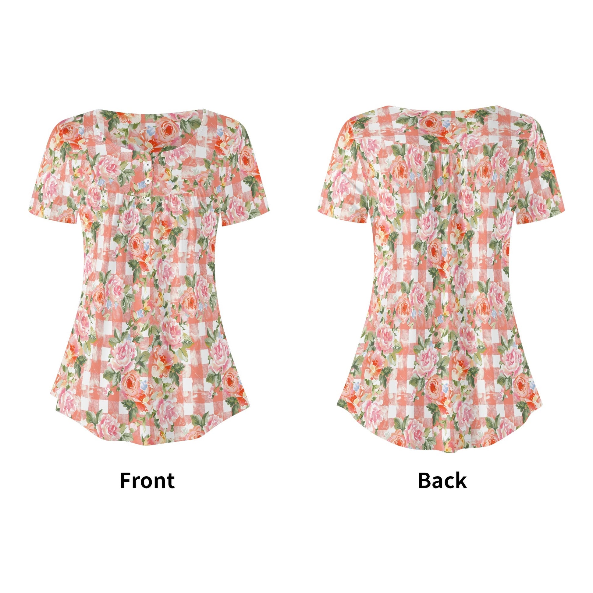 Grunge Floral Plaid | Womens Scoop Neck Short Sleeve Loose Blouse - Plus Sizes Available