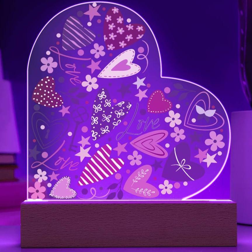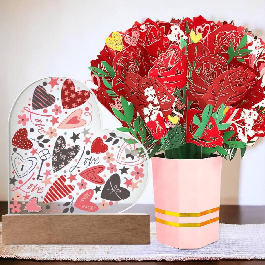 Heart of Love Acrylic Night Light & Sweetest Devotion Bouquet