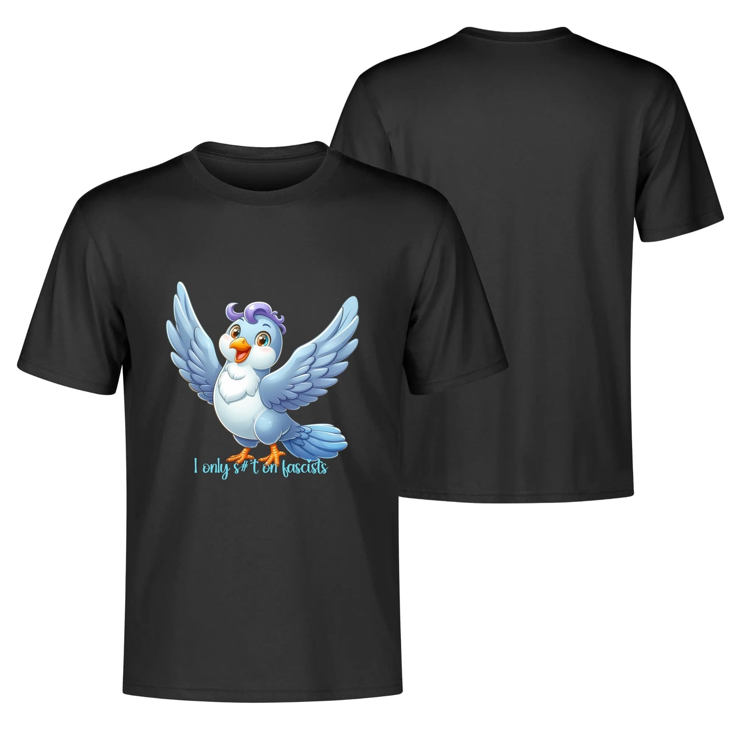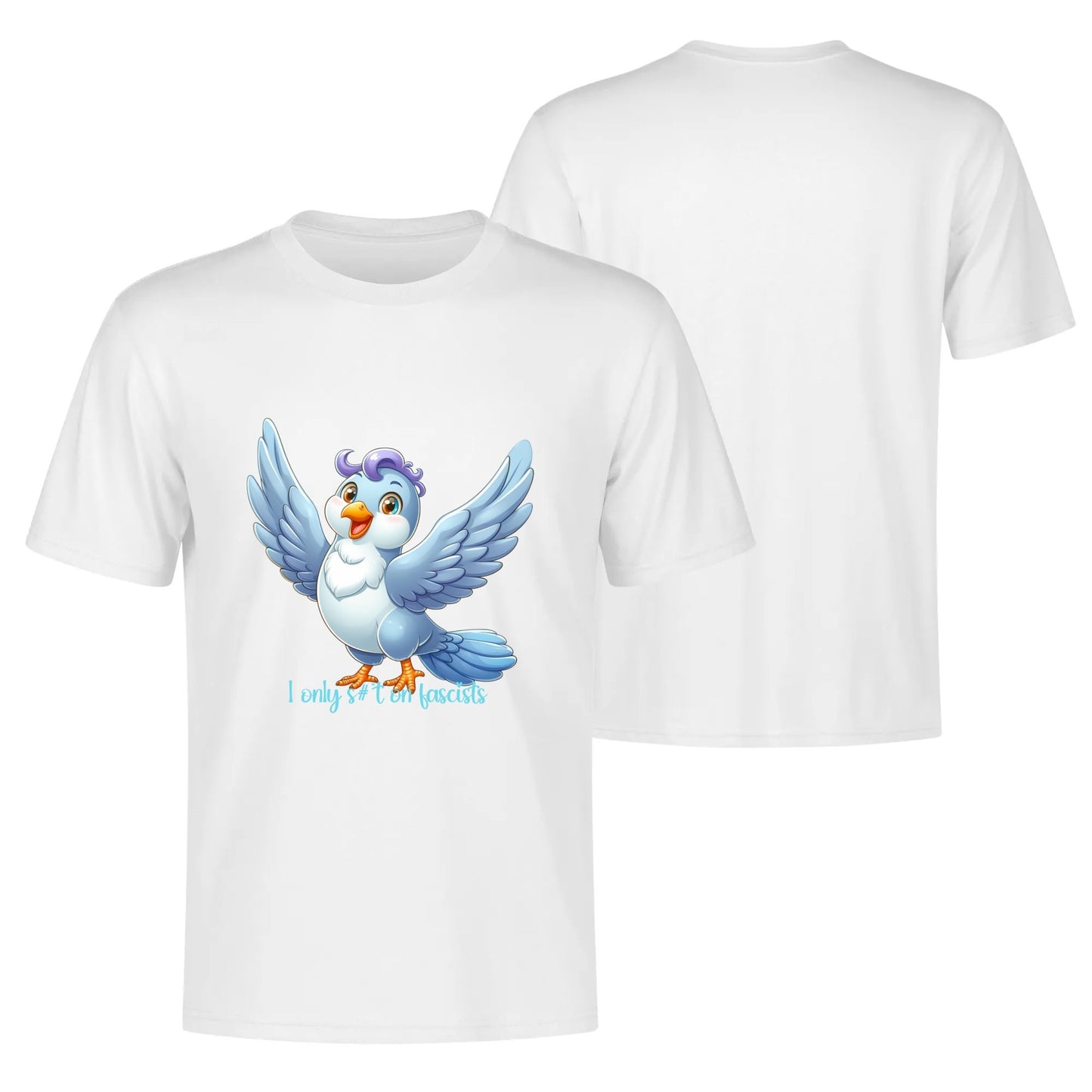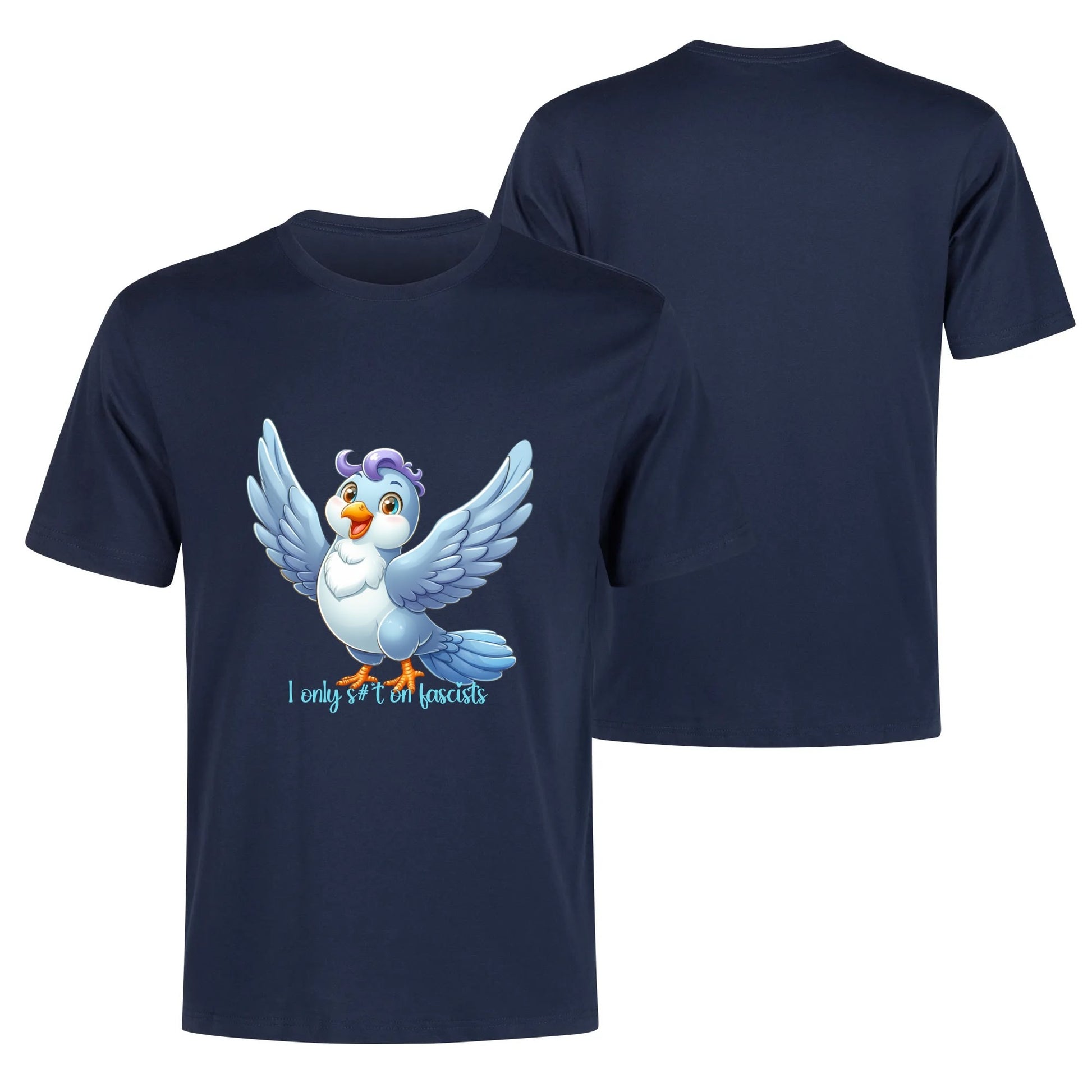 This wide-eyed little rebel might look innocent, but it’s got a mission: target fascism with zero tolerance and sharp aim. Bold, cheeky, and oddly uplifting, this design is for those who believe in freedom… and well-aimed droppings.