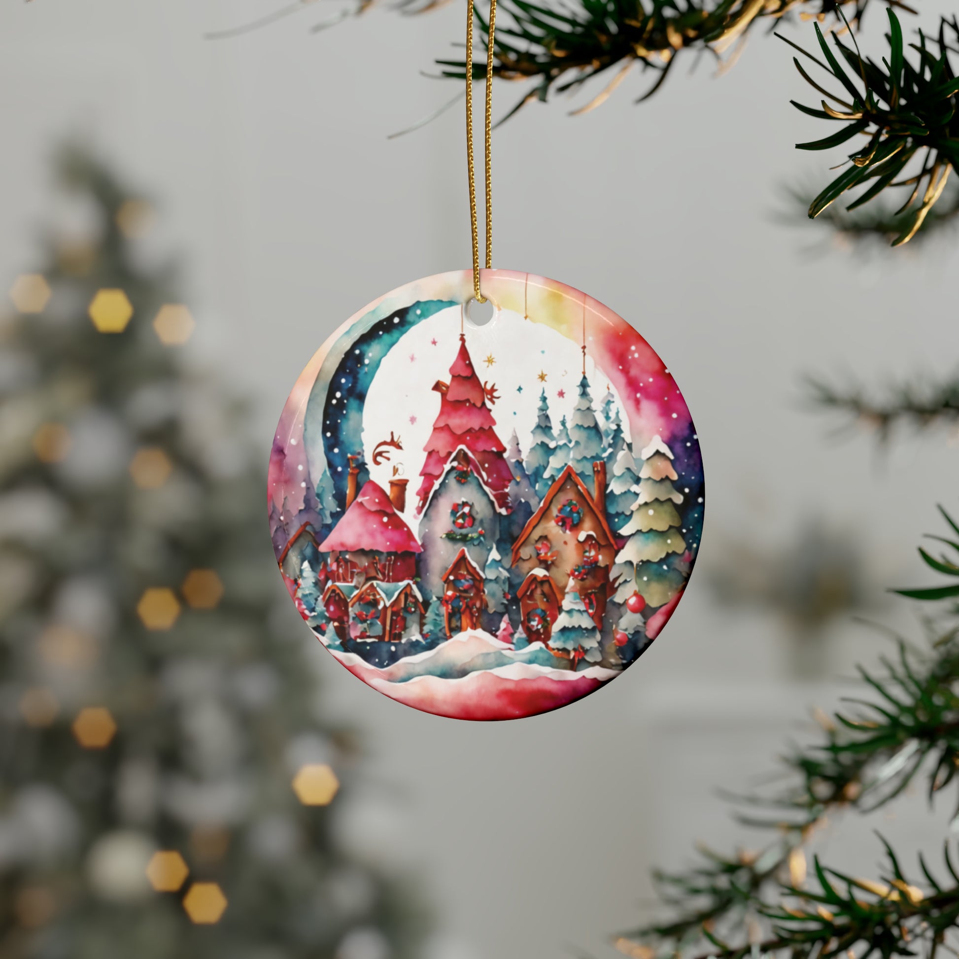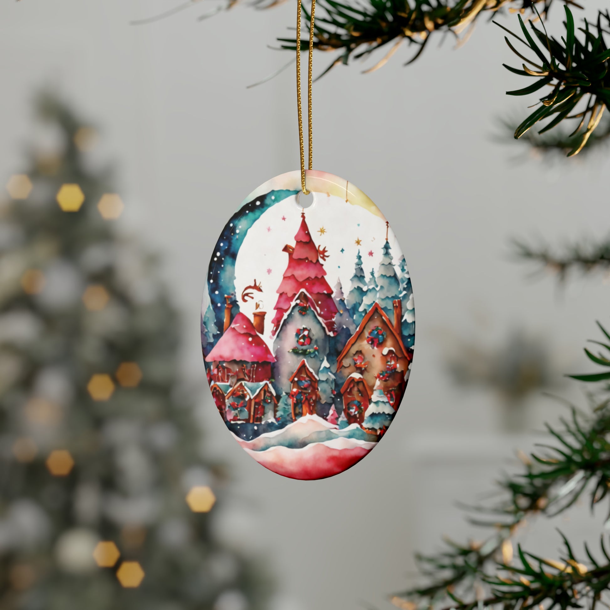 Idyllic Fantasy Christmas Scene | Ceramic Ornaments (1pcs, 5pcs, 10pcs, 20pcs) - 28