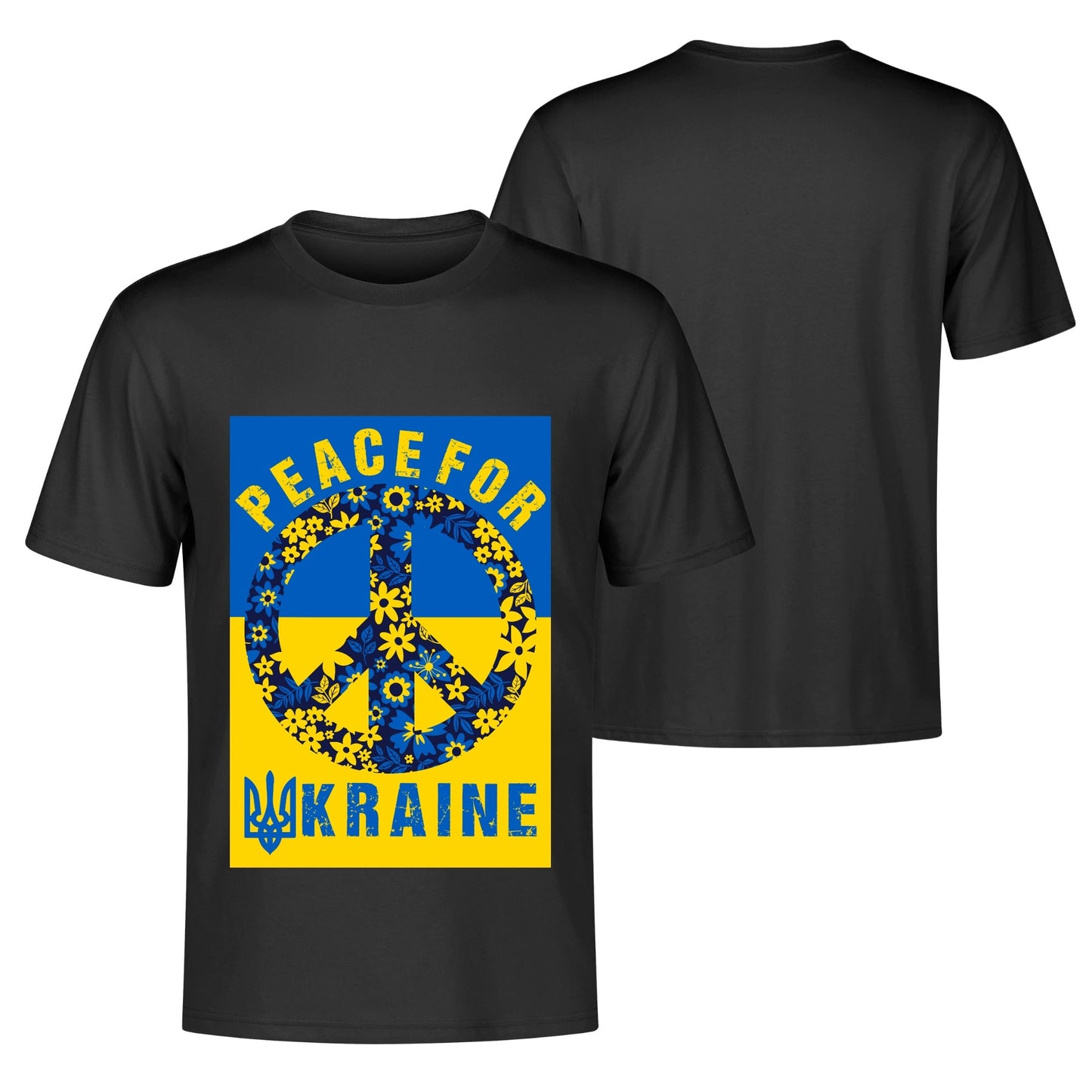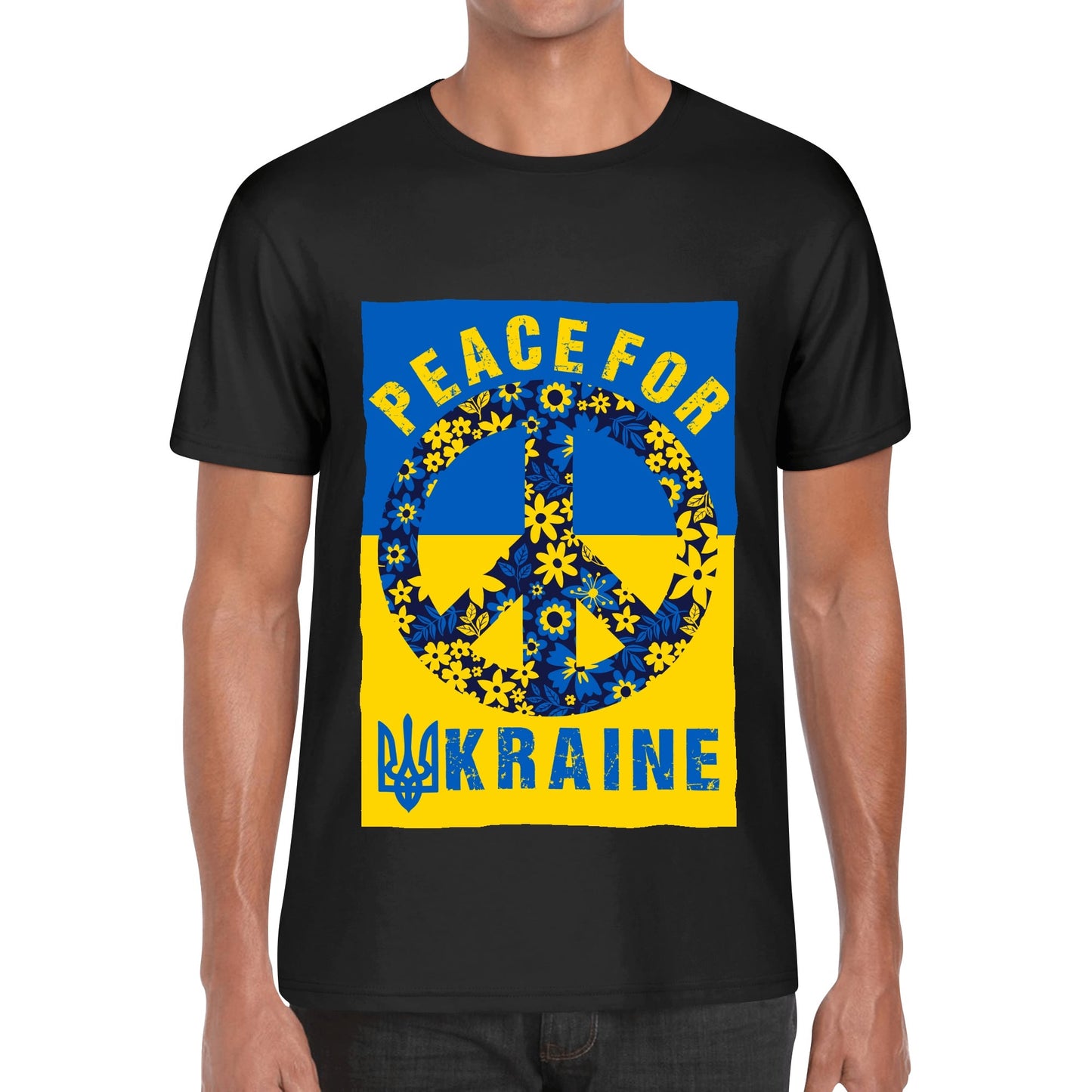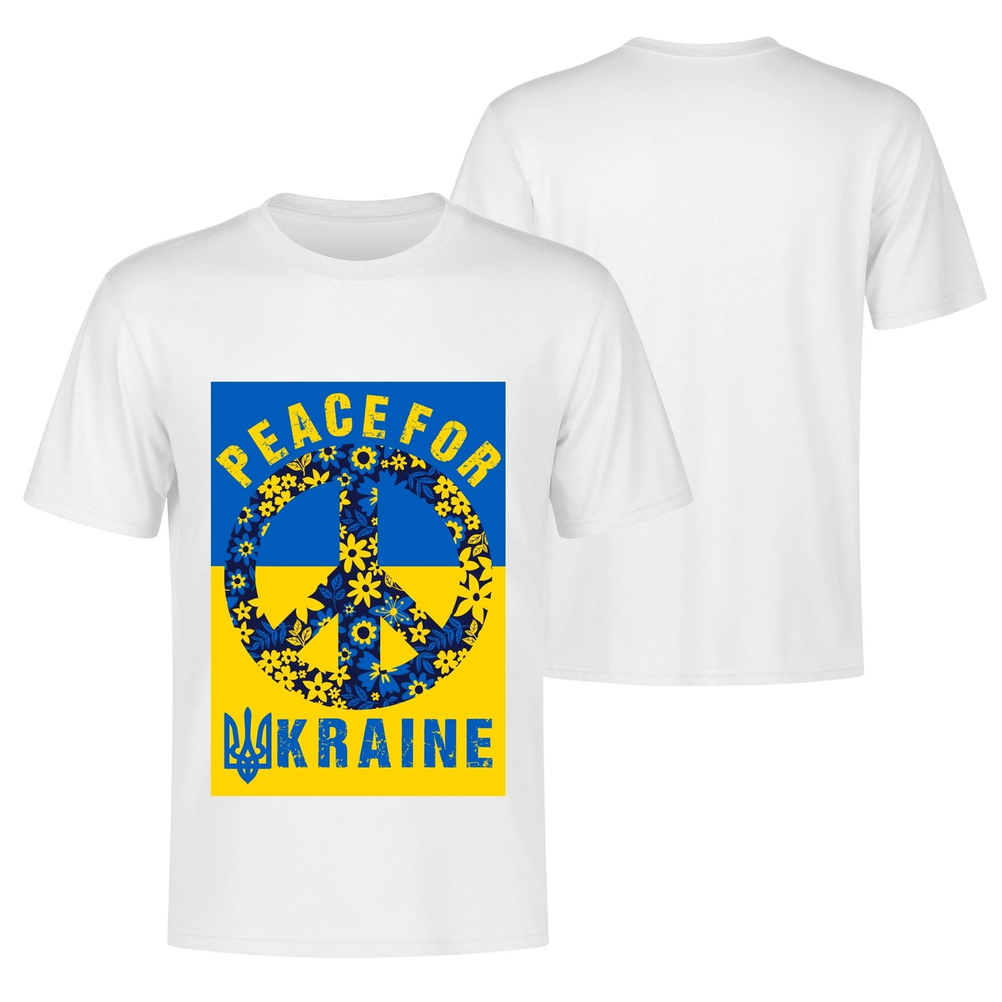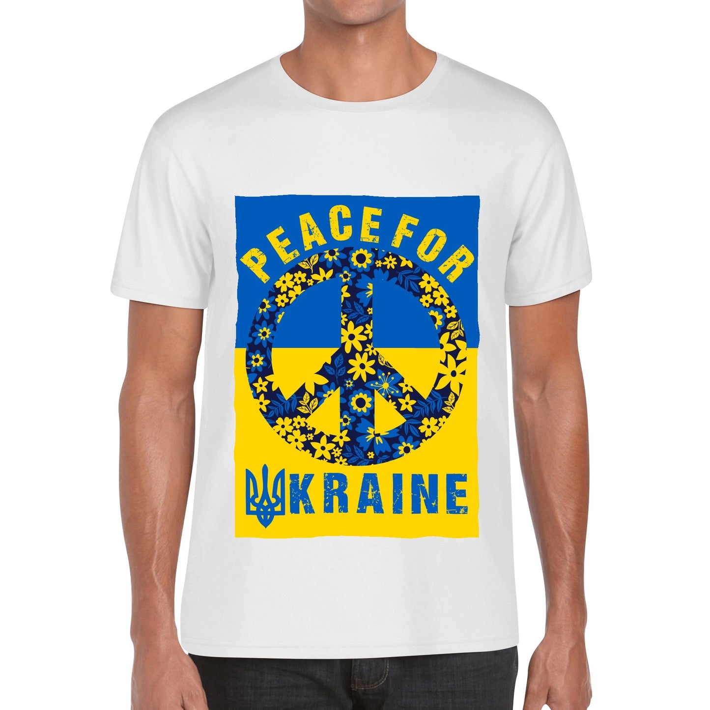 Peace For Ukraine | Men's 100% Soft Cotton T-Shirt - Ukraine Flag, Floral Peace Sign