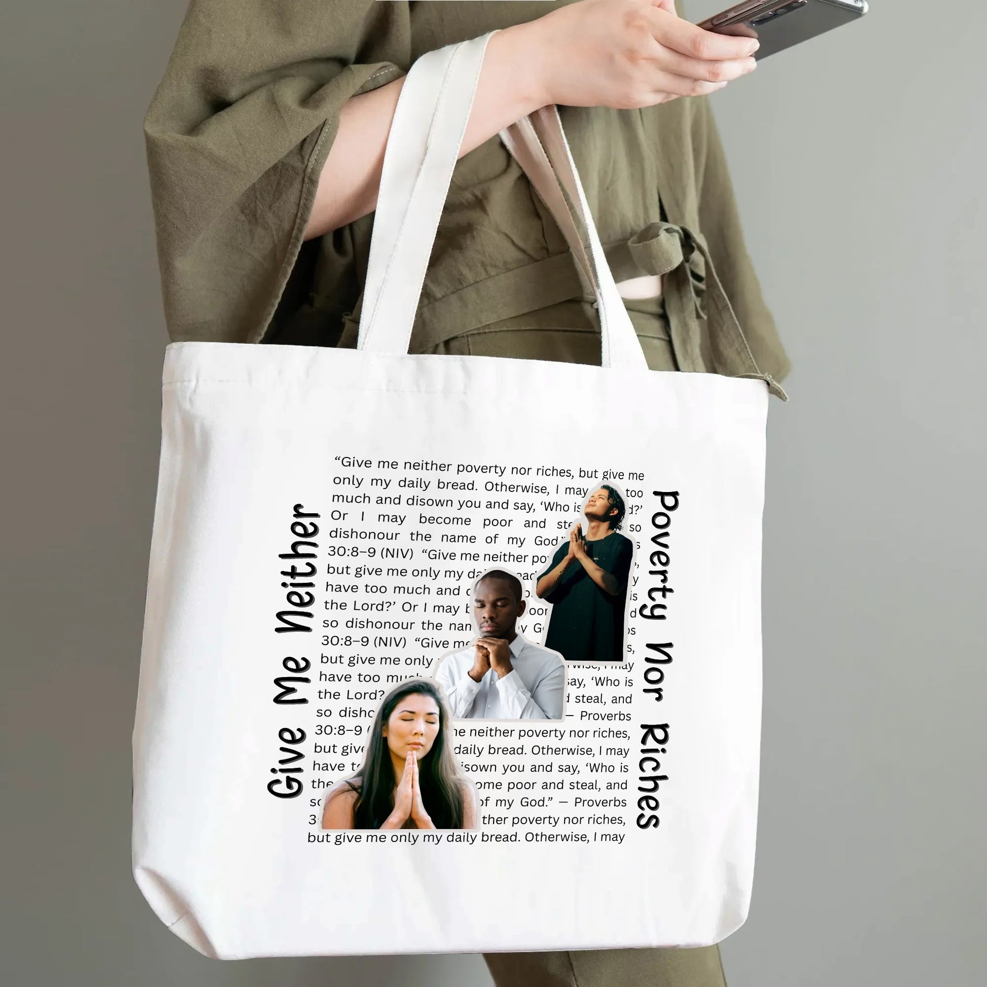 Proverbs 30:8-9 | Eco-Friendly Cotton Tote Bag – Spacious & Durable Design