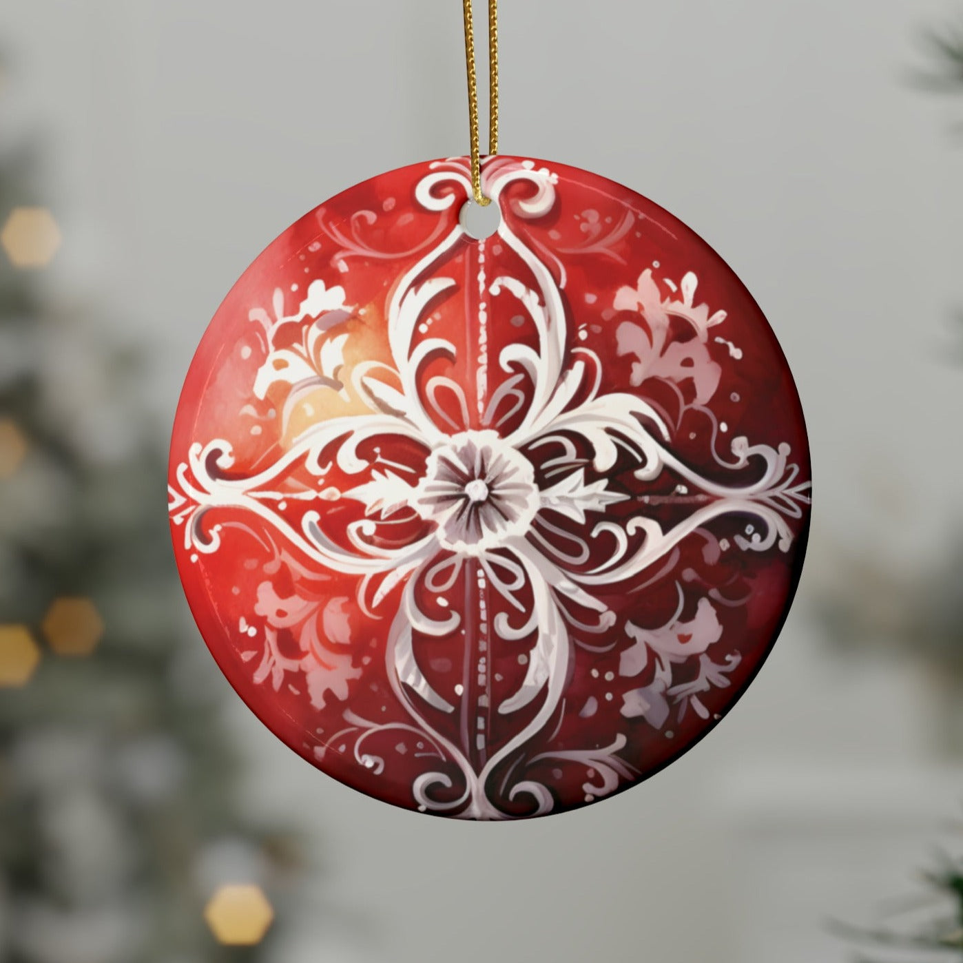 Red & White Swirls Ceramic Christmas Ornaments (1pcs, 5pcs, 10pcs, 20pcs)