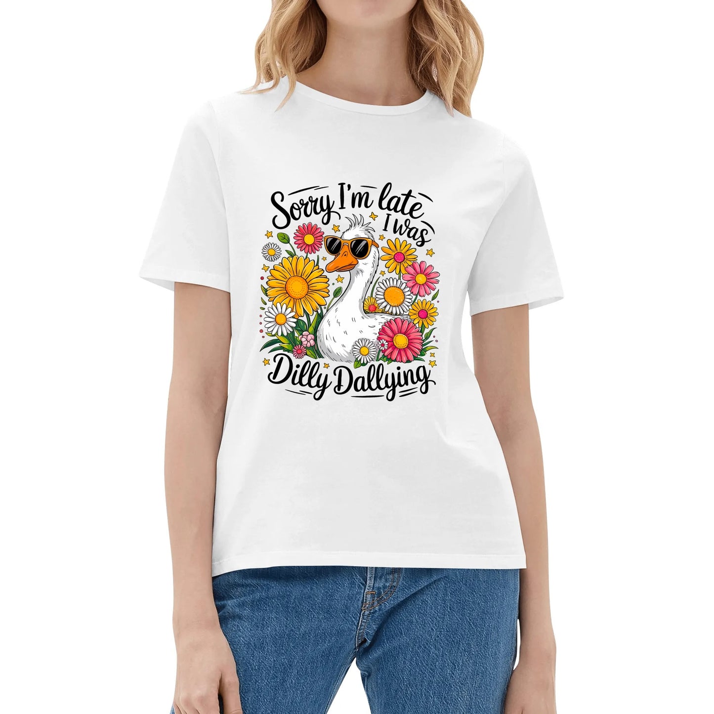 Sorry I'm Late I Was Dilly Dallying | Women's 100% Soft Cotton T-Shirt - Comfortable & Fun
