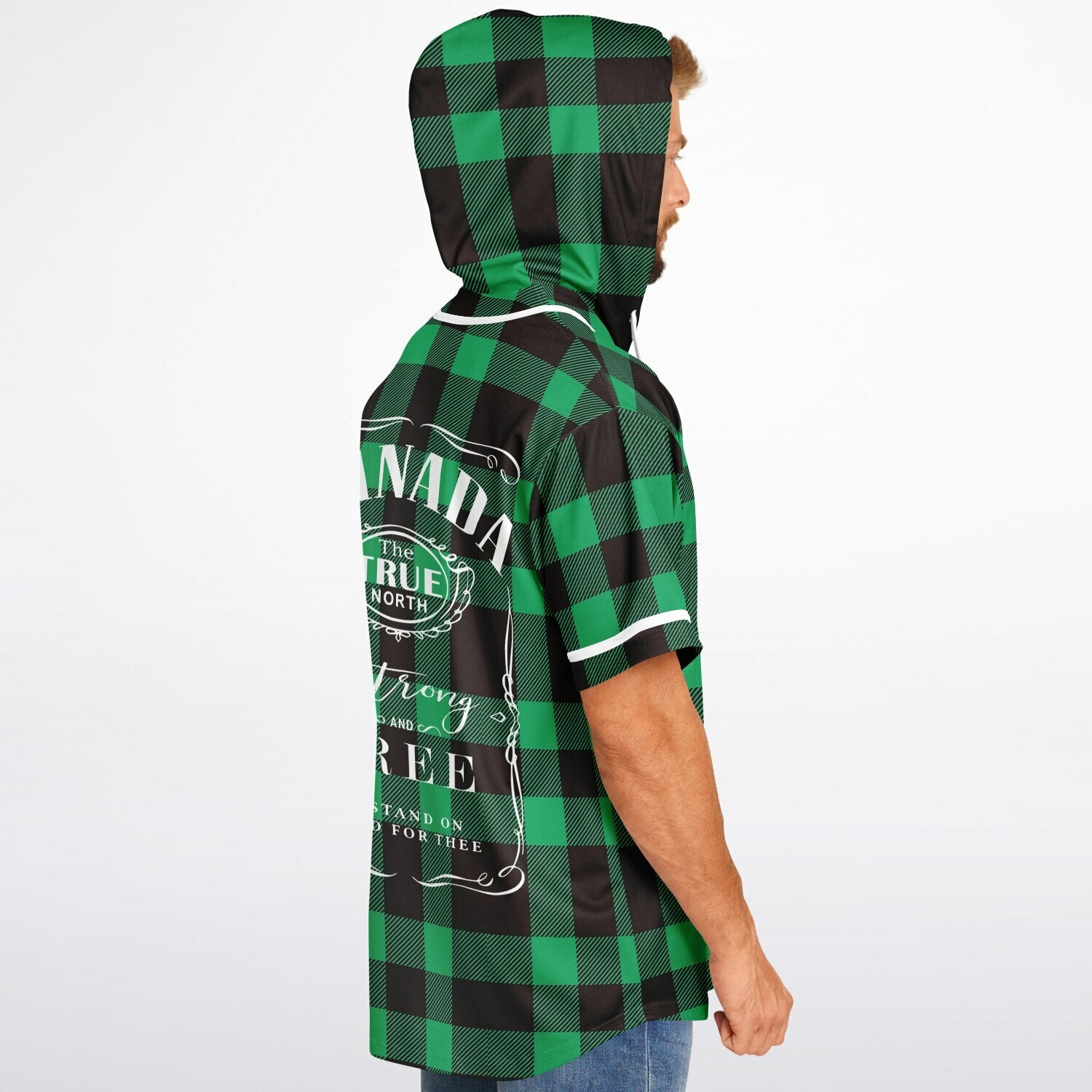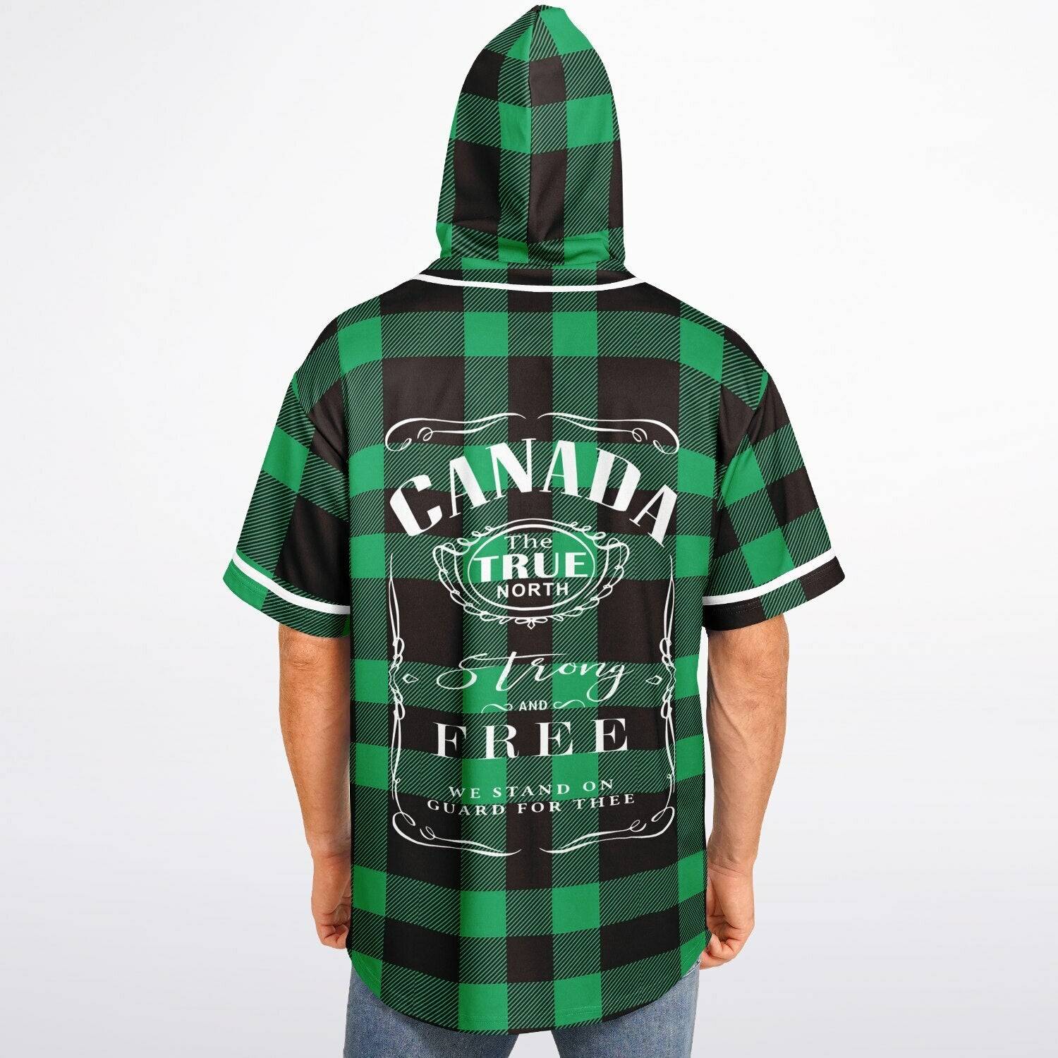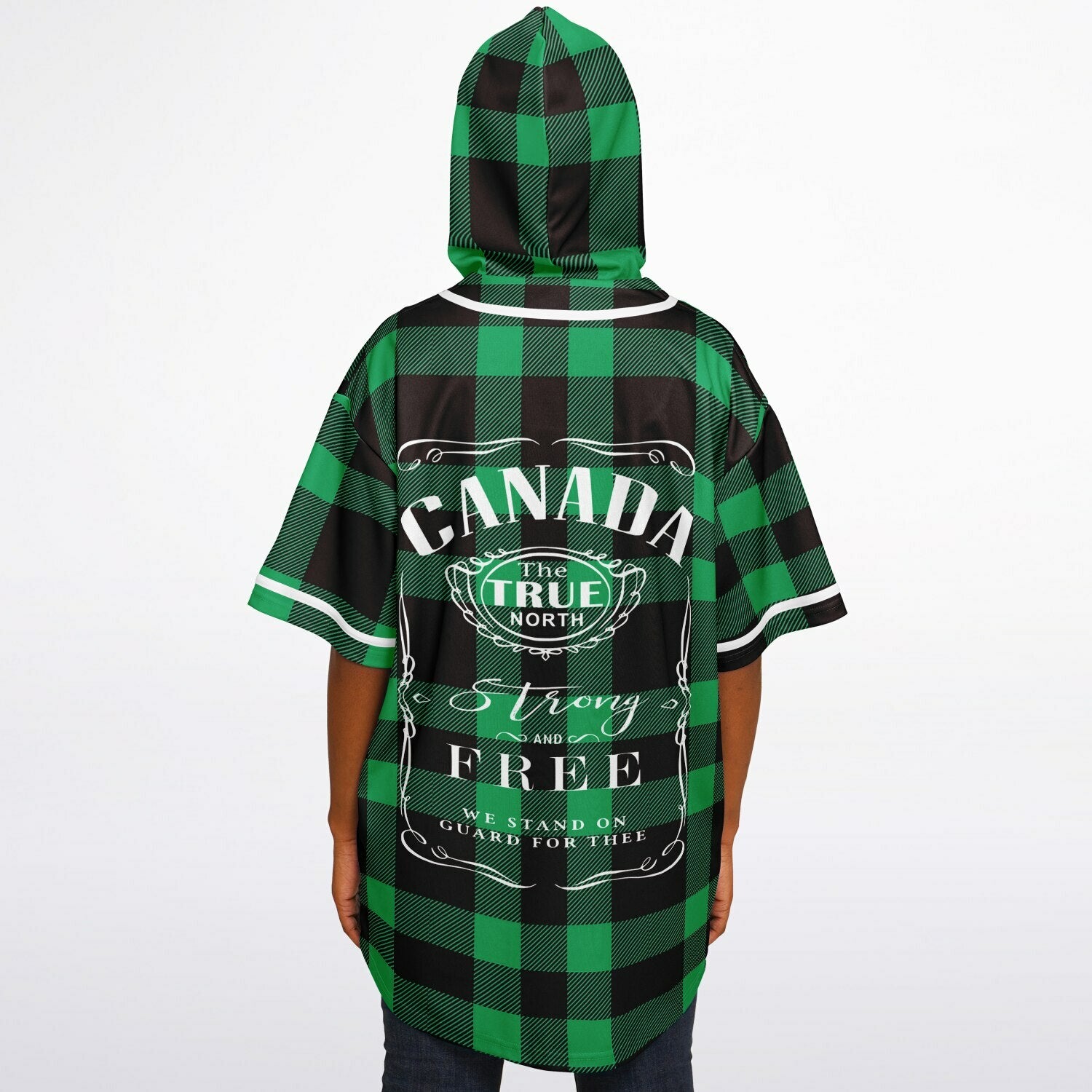 True North Strong & Free Green Plaid Hooded Baseball Jersey