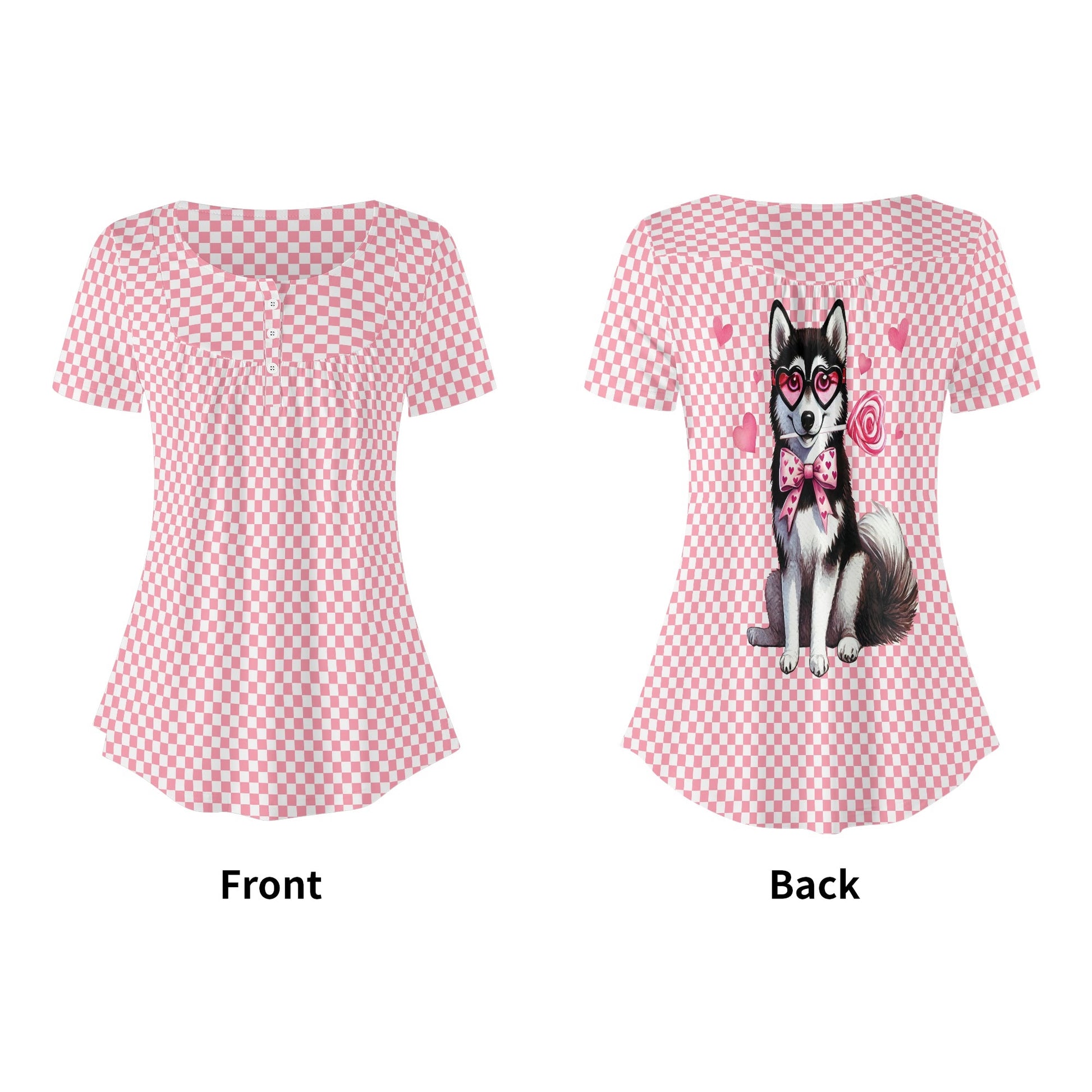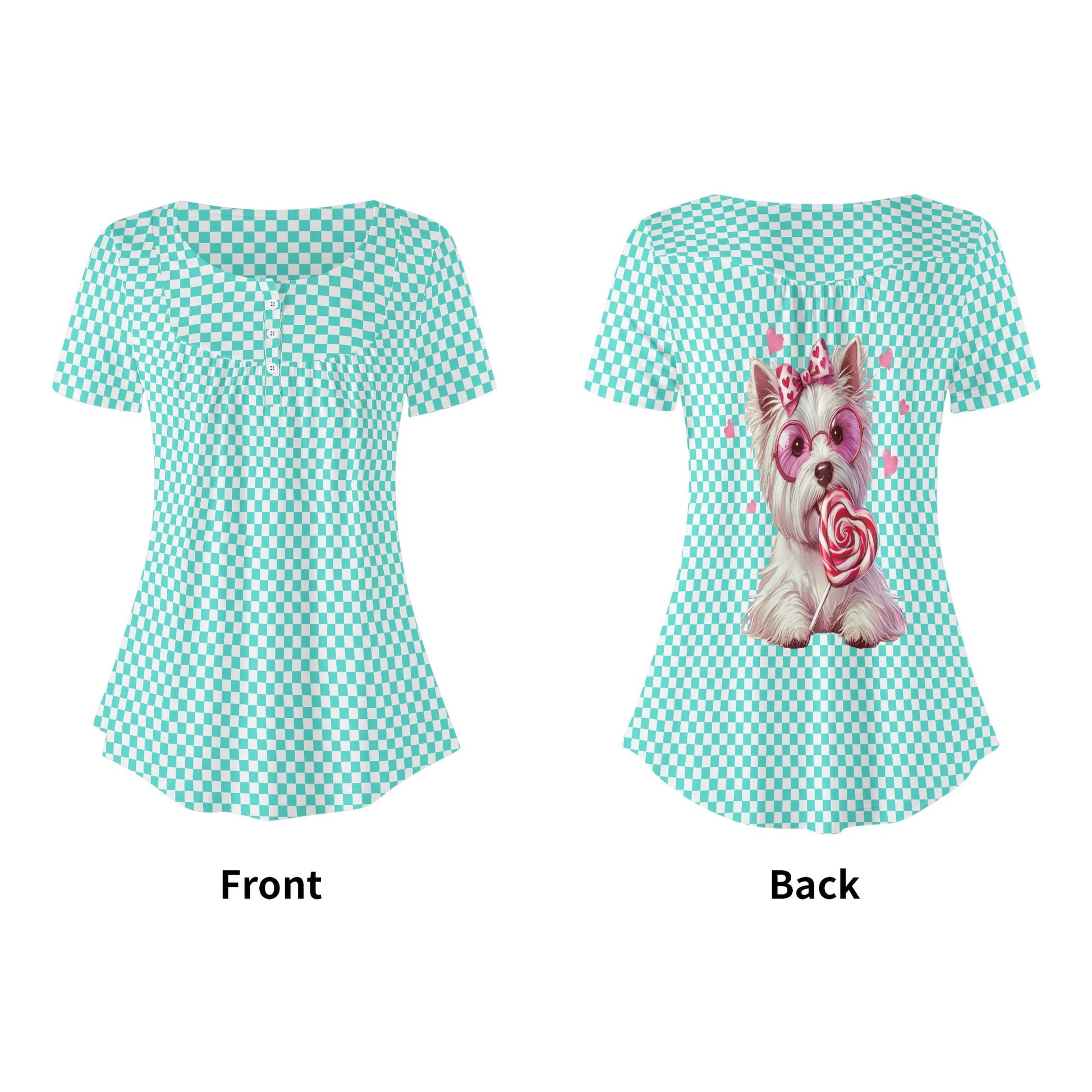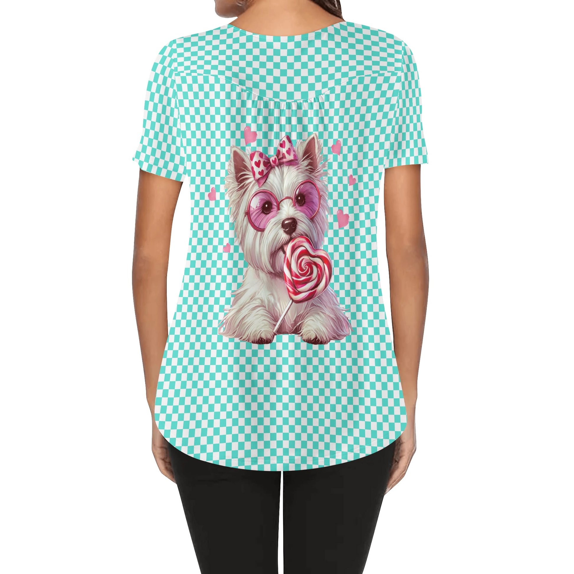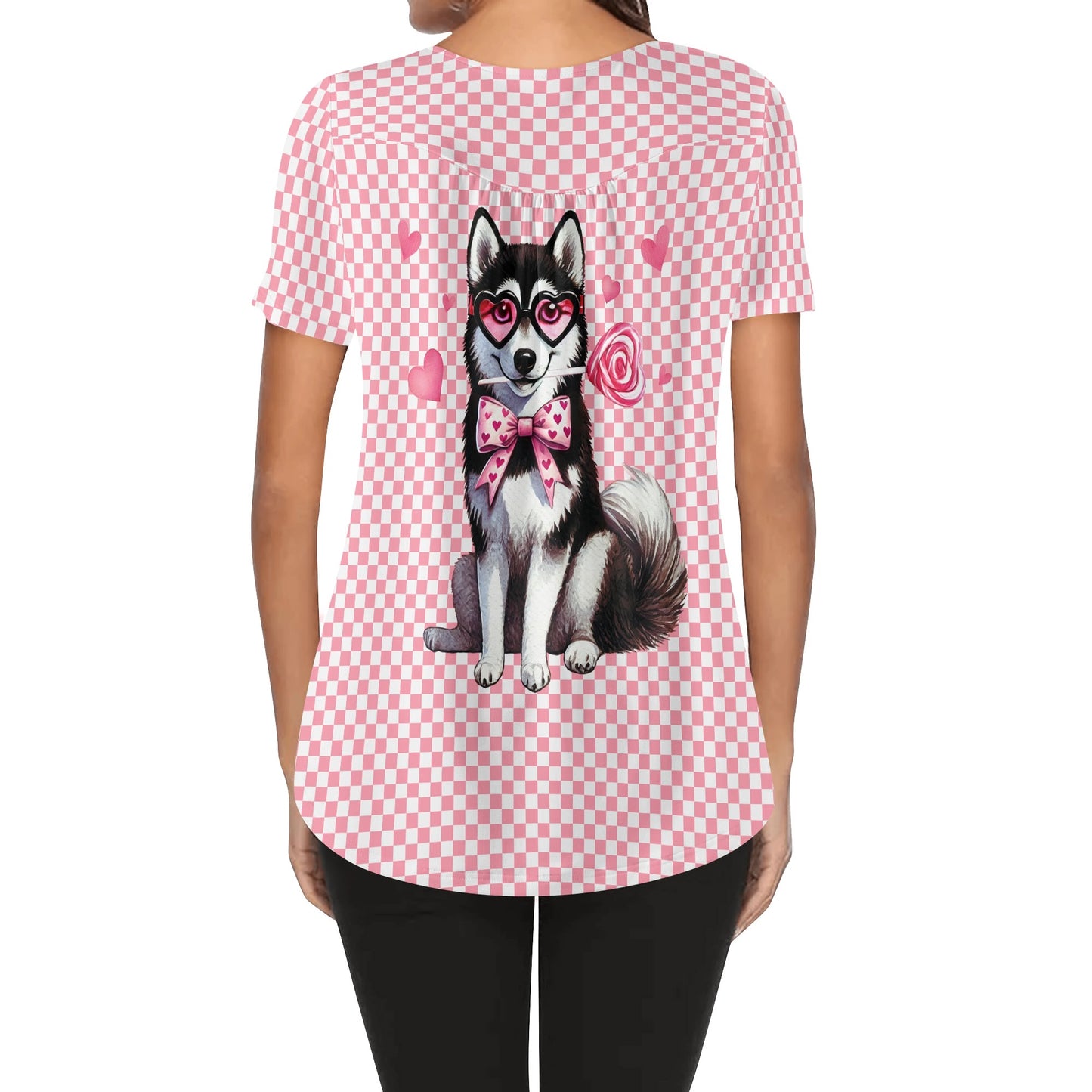 Valentine Pooches | Womens Scoop Neck Short Sleeve Loose Blouse - Plus Sizes Available