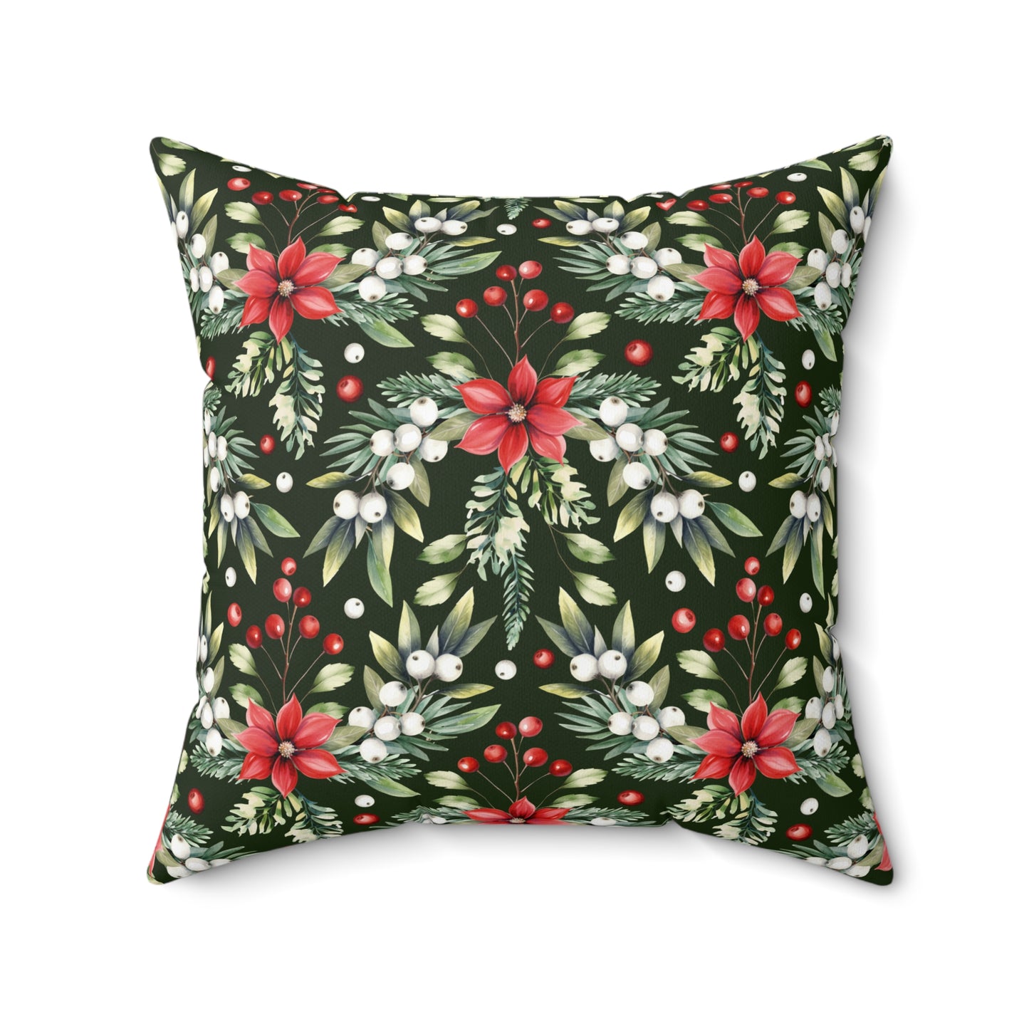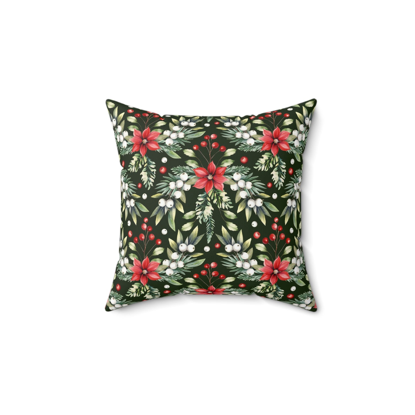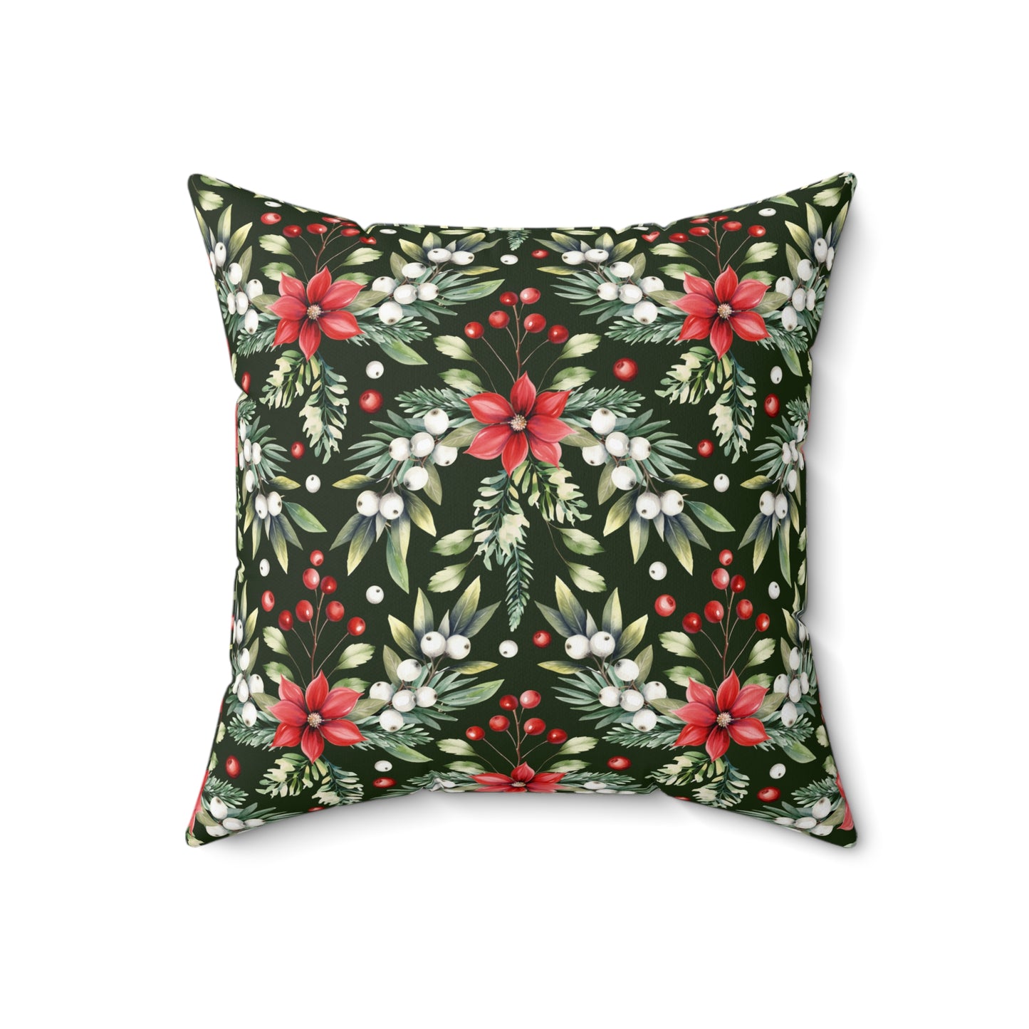 White Holly Berries | Spun Polyester Square Pillow - Holiday Cushion & Case - Available in 4 Sizes