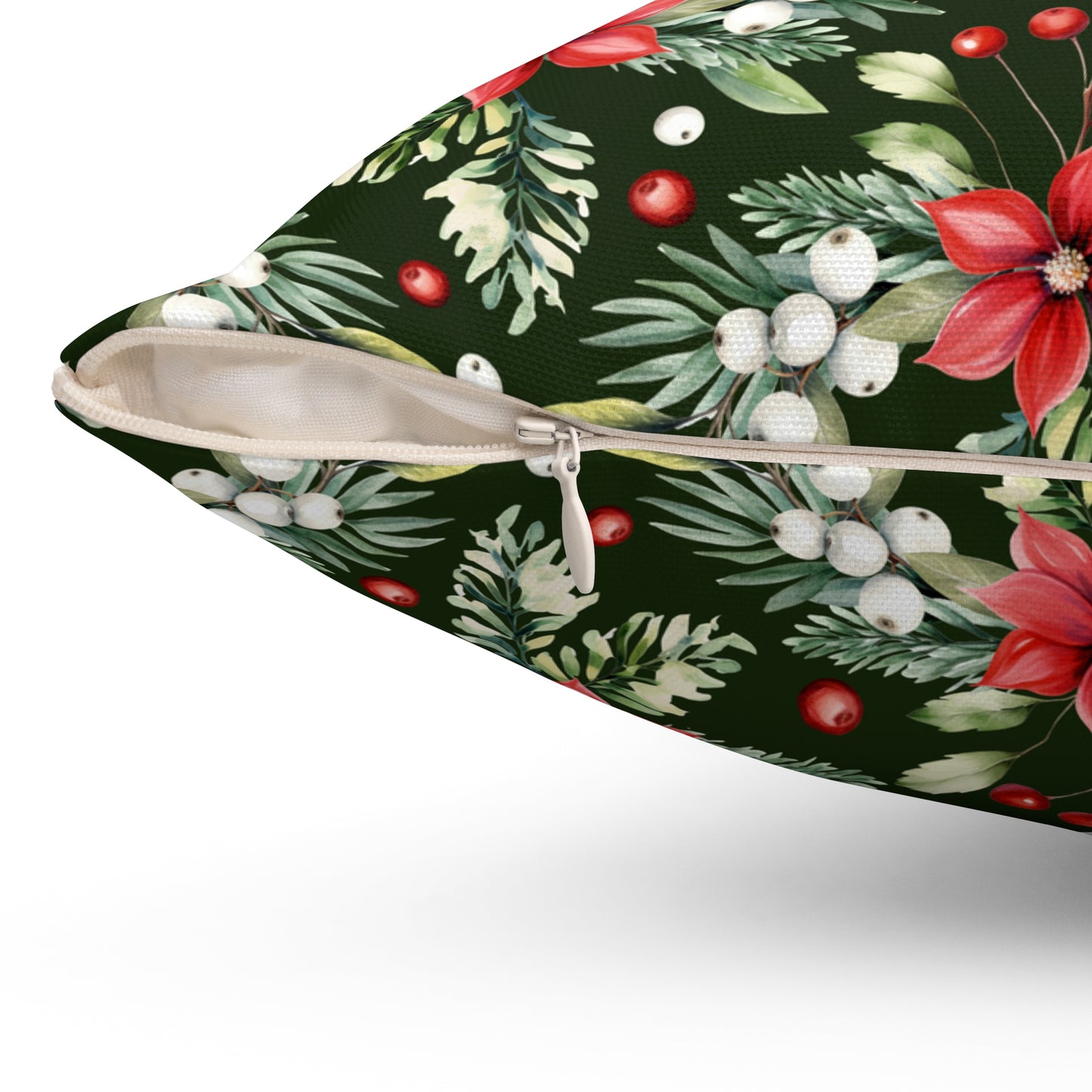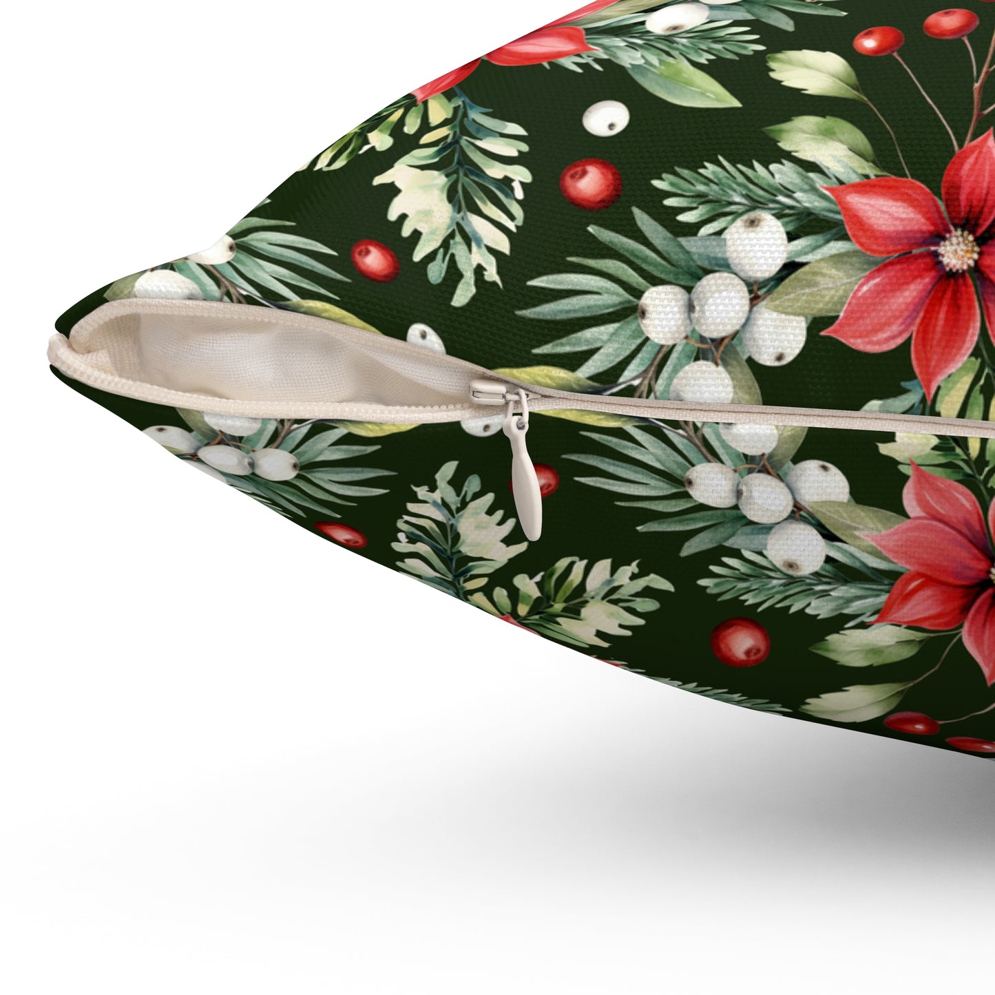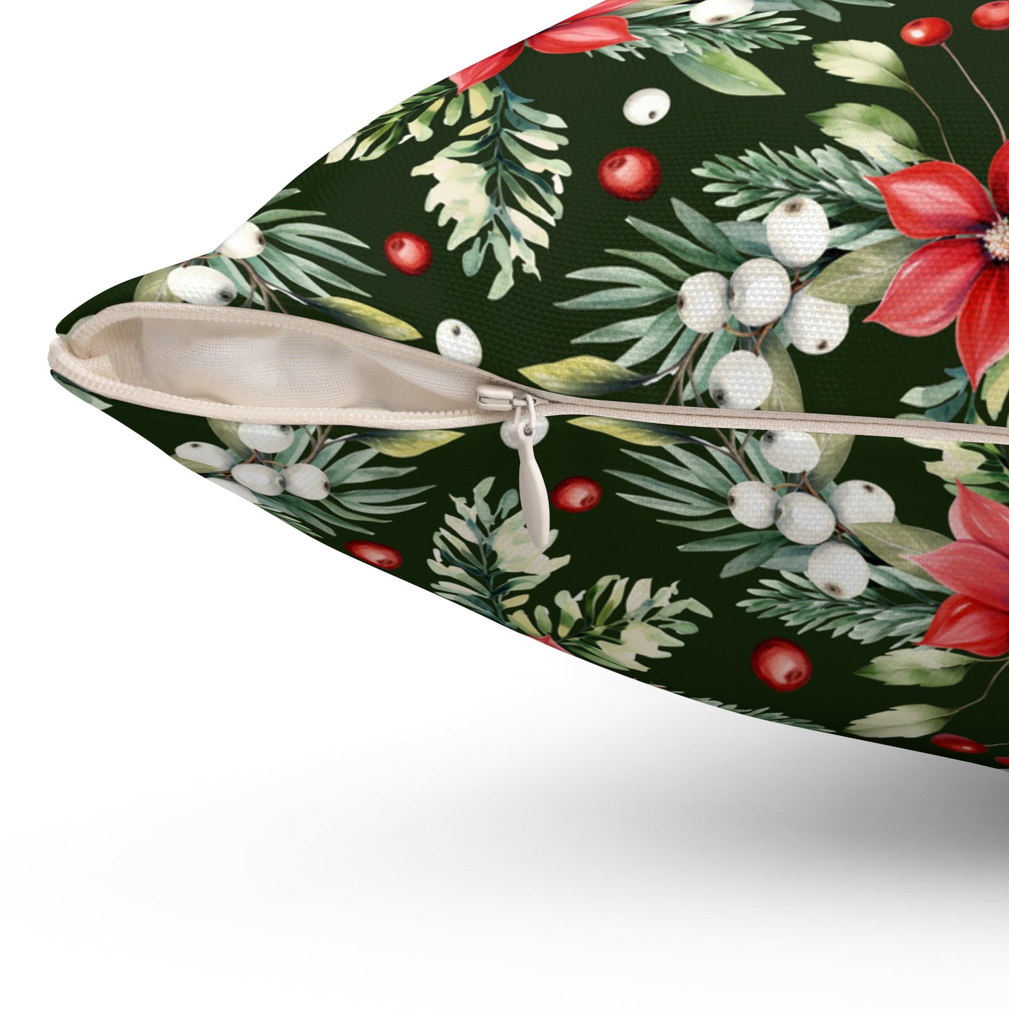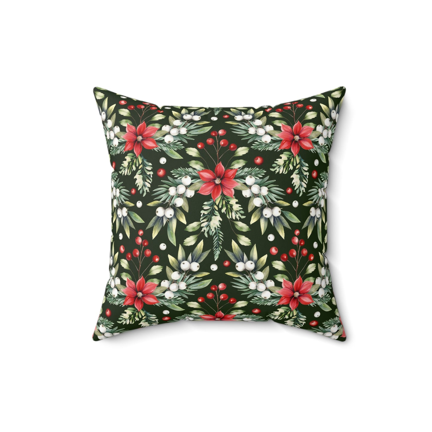 White Holly Berries | Spun Polyester Square Pillow - Holiday Cushion & Case - Available in 4 Sizes
