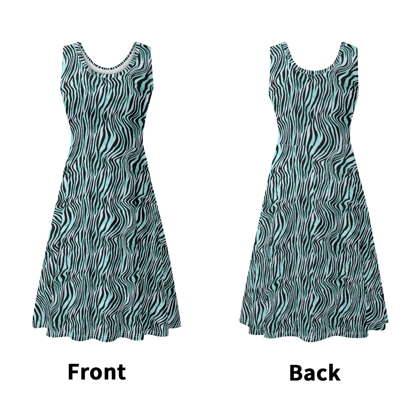 Zebra Print | Womens Tank A-Line Sundress with Pockets - Effortless Comfort & Style - Teal